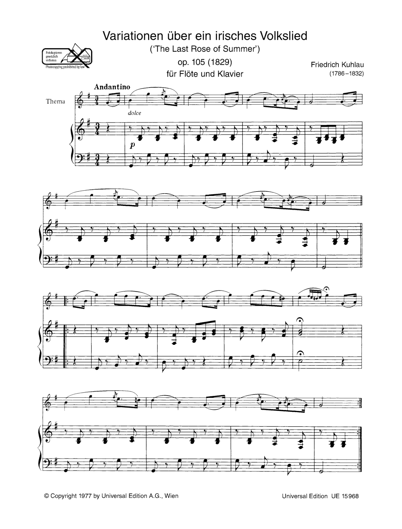 「庭の千草」による変奏曲(フリードリヒ・クーラウ)(フルート+ピアノ)【Variationen über das irische "The Last Rose of Summer"】