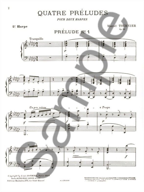 4つの前奏曲・Vol.2 (マルセル・トゥルニエ)(ハープ二重奏)【Four Preludes Vol. 2】