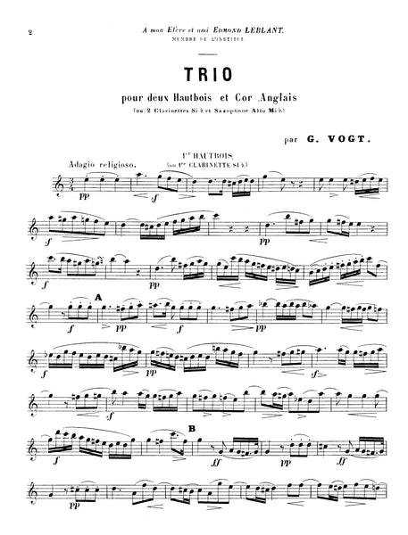 アダージョ・レリジオーソ (ギュスターヴ・フォークト)(木管三重奏)【Adagio religioso】