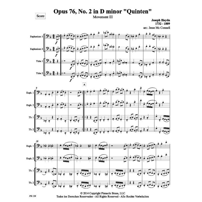 弦楽四重奏曲第76番・ニ短調(フランツ・ヨーゼフ・ハイドン)(ユーフォニアム&テューバ四重奏)【Opus 76, No 2 in D minor "Quinten"】
