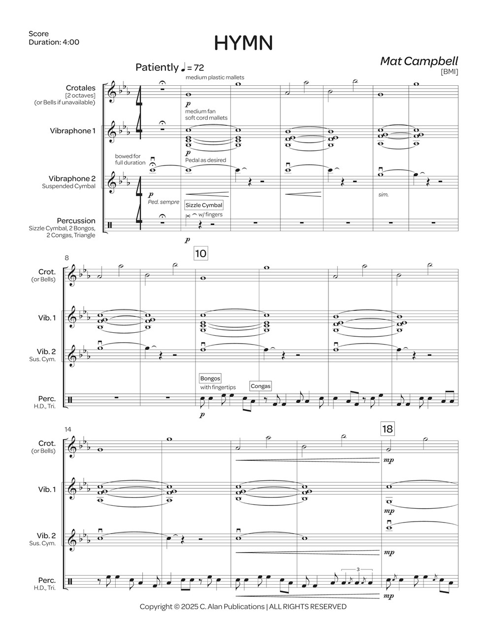 聖歌 (マット・キャンベル)(打楽器四重奏)【Hymn】