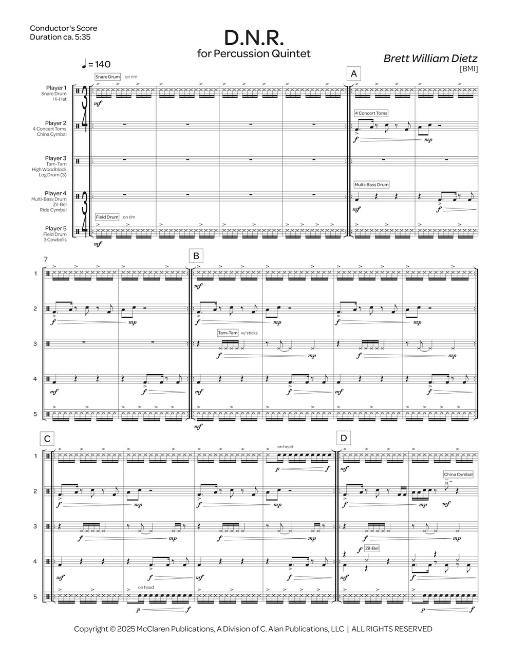 D.N.R. (ブレット・ウィリアム・ディーツ)(打楽器五重奏)