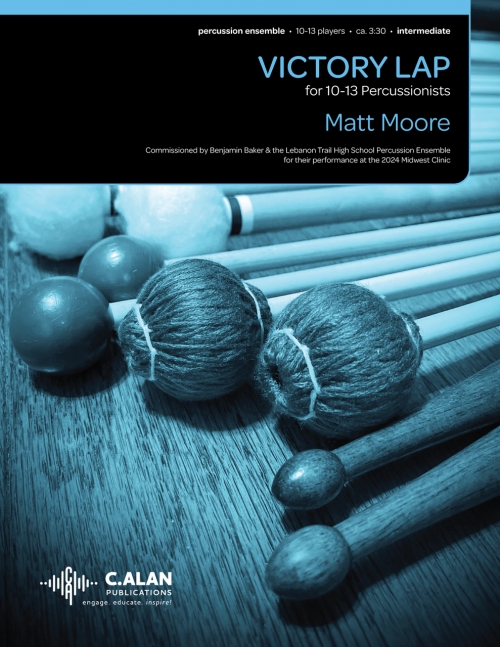 ベンジャミン・ベイカーとレバノン・トレイル高校パーカッション・アンサンブルが2025年ミッドウェスト・クリニックでの演奏のために委嘱した「ビクトリー・ラップ」は、偉業とそれを支えてくれた人々への音楽的なトリビュートです。ラテンポップを基調としたこの曲は、聴く者を活気に満ちた心地よい雰囲気へと誘い、ステージを喜びと支えを分かち合う空間へと変貌させます。 - 作曲者