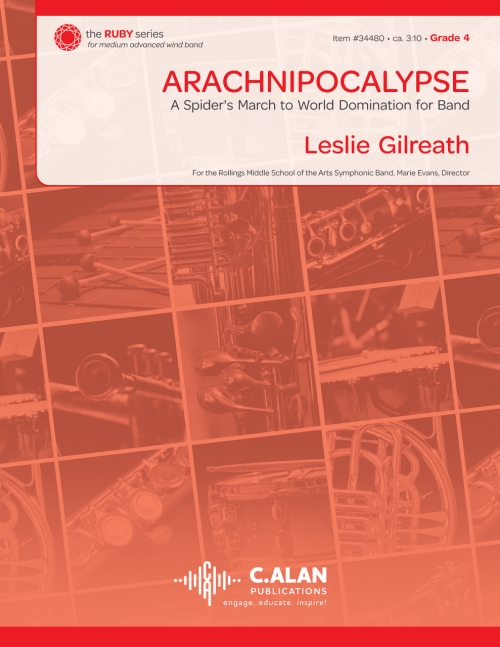 アラクニポカリプスは、蜘蛛の世界征服への行進です。お馴染みのテーマを八音音階の枠に収め、鉄の脚で地球を支配しようと決意した若く意志の強い蜘蛛の冒険を描いています。リズムと音程のニュアンスの両方において、「8」という数字への言及が随所に見られます。勇敢な蜘蛛が世界の覇権を握るべく、敵を踏みつけ、壊滅させるにつれ、サイレンが鳴り響いているのが聞こえてきそうです。クモ恐怖症の方はご注意ください。 - 作曲者