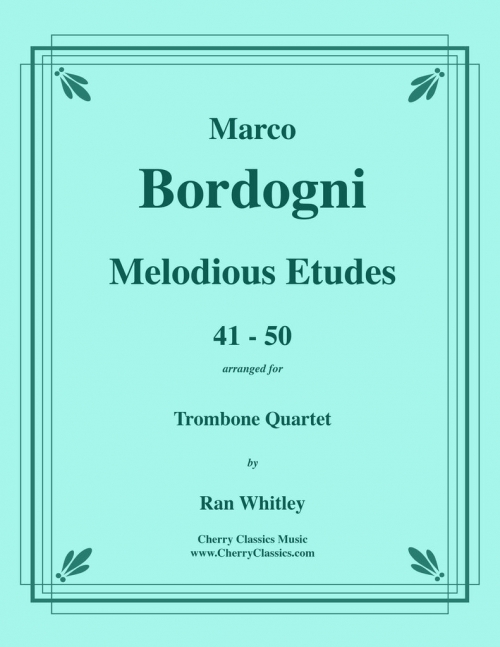 ラン・ホイットリーは、トロンボーン四重奏のために、メロディアス・エチュード41~50番を10曲も美しく編曲しました。すべてヘ音記号で、中級から上級の演奏者に適しています。メロディーライン全体がパート1に収録され、パート2、3、4が伴奏となります。 - 編曲者