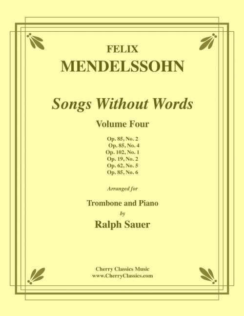 ラルフ・ザウアーは、メンデルスゾーンの無言歌曲集第4巻から6曲をテナートロンボーンとピアノのために編曲しました。メンデルスゾーンは生涯を通じてピアノのための歌曲集を8巻作曲しました。これらの作品は、その美しさと親しみやすさから、たちまち人気を博しました。「歌曲集」は、ほとんどが叙情的で、この上なく美しい作品です。ザウアー氏は、これまで未開拓だったこの貴重な素材を発掘し、トロンボーンのレパートリーに計り知れないほどの豊かさをもたらしました。