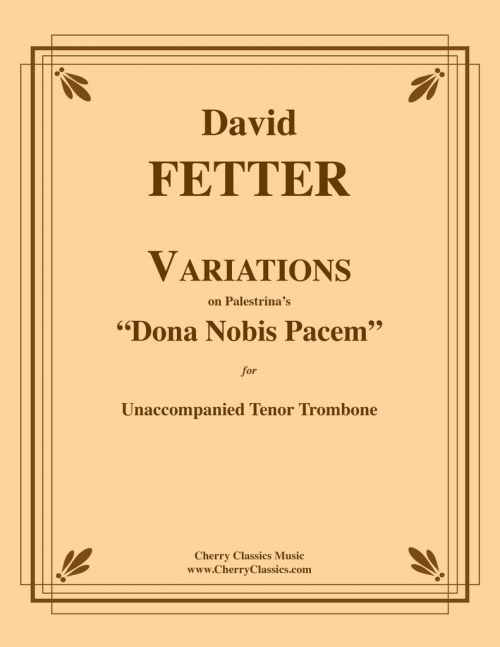 「ドナ・ノービス・パーチェム(平和を授けたまえ)」は、パレストリーナ作とされる3節の短い連作です。デイヴィッド・フェッターは、この美しい主題をもとに、無伴奏テナートロンボーンのための美しい変奏曲集を作曲しました。