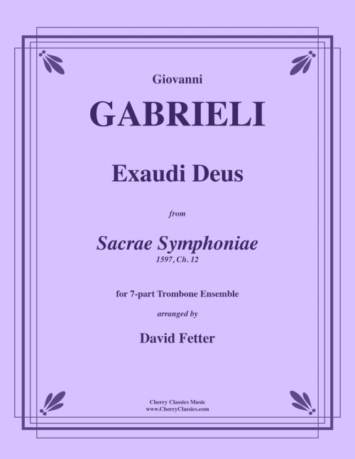 ジョヴァンニ・ガブリエリ作曲、7パート・トロンボーン・アンサンブルのための「エクサウディ・デウス」(デイヴィッド・フェッター編曲)は、ガブリエリの1597年ヴェネツィア作曲の傑作「サクラエ・シンフォニアエ」から抜粋した、合唱と器楽が混在する宗教モテットです。