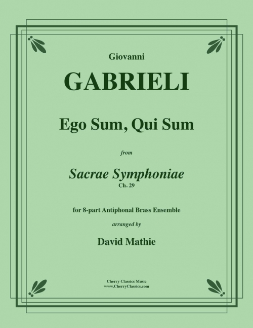 ジョヴァンニ・ガブリエリ作曲の「我は我なり」は、1597年に作曲されたサクラエ・シンフォニアエに収録されており、復活祭の朝課で伝統的に歌われてきた8部交響合唱のために作曲されました。デイヴィッド・マシーはこの華麗な作品を8部交響金管合唱用に編曲・編集しました。各合唱はB♭トランペット2本とトロンボーン2本で構成されています。