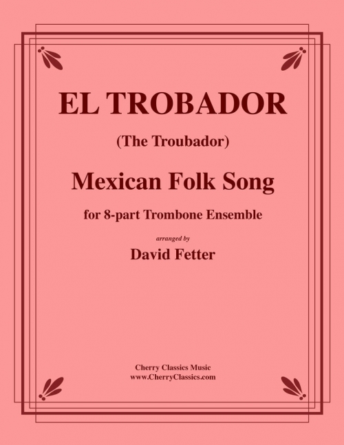メキシコの伝統民謡「エル・トロバドール」を、デイヴィッド・フェッターが8パートのトロンボーンアンサンブル用に編曲しました。この美しい編曲は、騎士道、冒険、そしてロマンスに満ちたロマンチックな時代を彷彿とさせます。中上級者向けの楽曲で、全曲ヘ音記号で演奏されます。