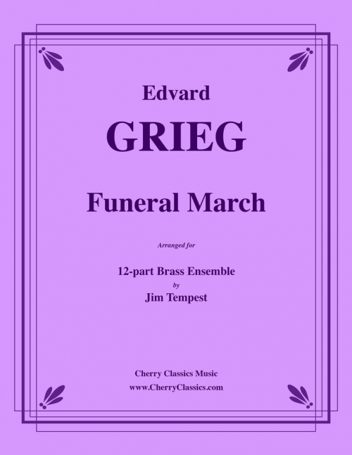 エドヴァルド・グリーグの「葬送行進曲」は、1866年に親友であり音楽仲間でもあったノルウェー出身のリチャード・ノードラークの訃報を受け、ピアノのために作曲されました。後にグリーグは軍楽隊用に、そして金管合唱用に編曲しました。彼はこの作品を大変高く評価し、自身の葬儀でも演奏してほしいと依頼しました。