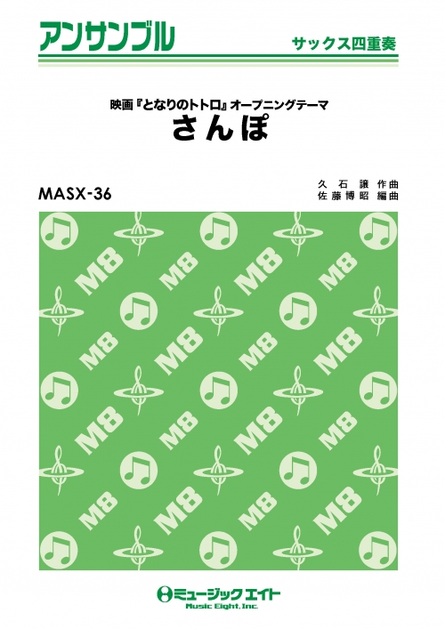 - 1988年に公開された映画「となりのトトロ」の主題歌で、20年以上経った現在でも、もはやスタンダードともいえるほど広く知られている、久石譲の作品です。親しみやすいフレーズは、老若男女みんなのハートをがっちりつかみます。このサクソフォーン四重奏版では、様々な仕掛けによって変化に富んだ音楽に仕上がっています。